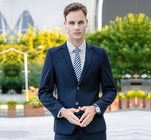 男裝職業裝定制簡單大方穩重,這是職業男裝設計的時候必須遵循的,不要花里胡哨,特別夸張的絕對杜絕。、彩搭一般是以冷色調為基礎,突出其穩重,布料一定要優質,顯示器高端。相信穿上這樣設計好的職業裝,穩重成熟形象立馬體現,對于形象而言也是大大提升。